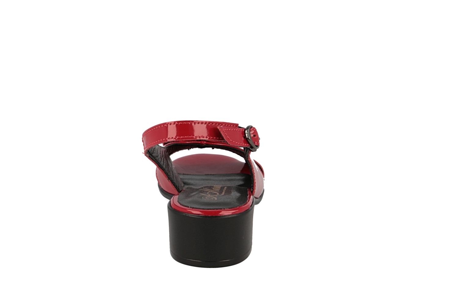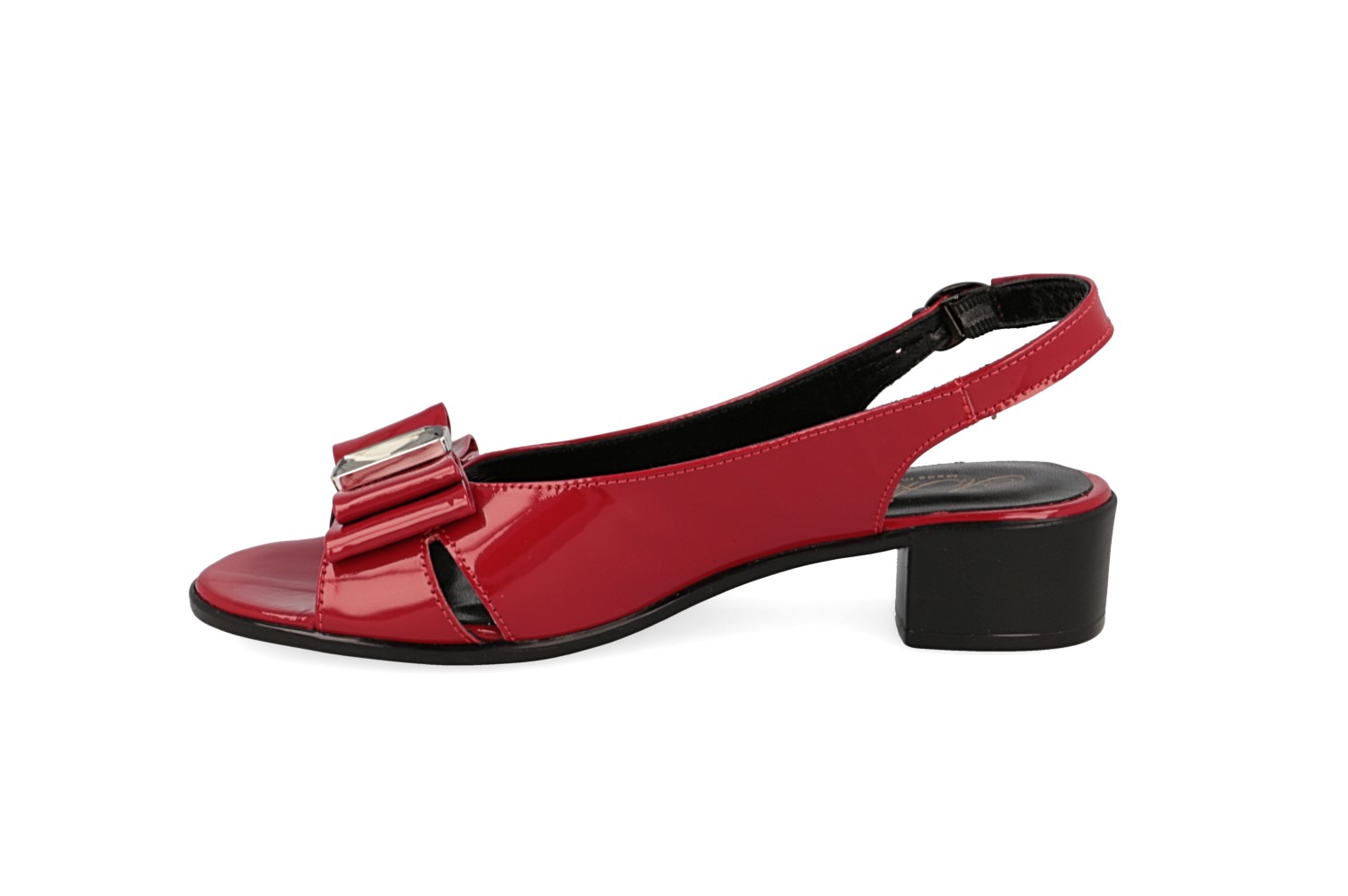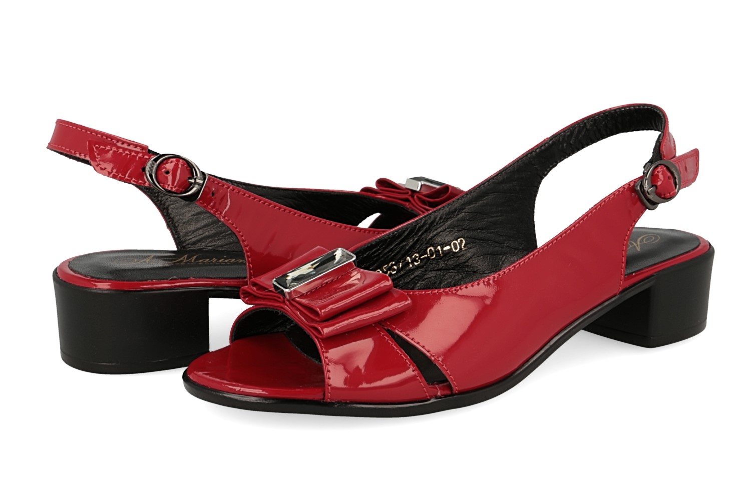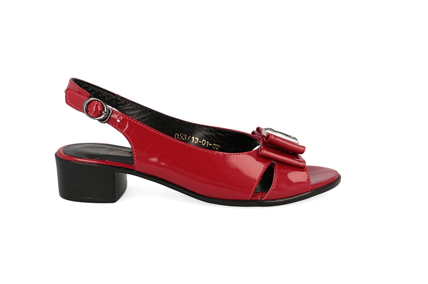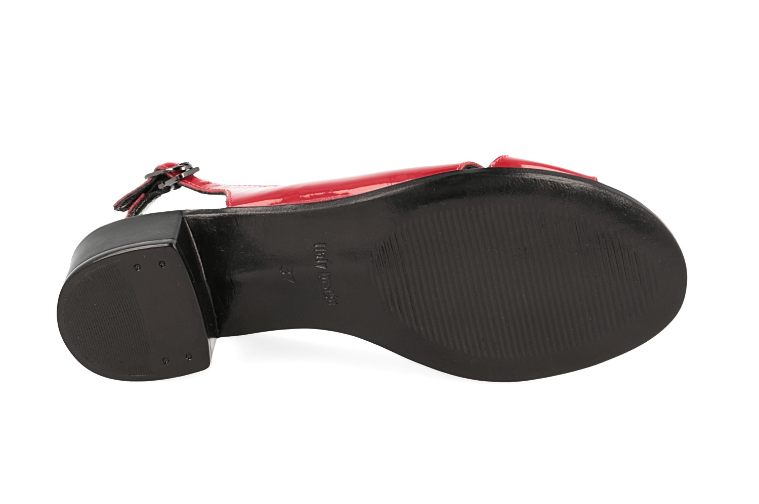 красного цвета. Открытый мысок смотрится элегантно. Ремешок с застежкой фиксирует
