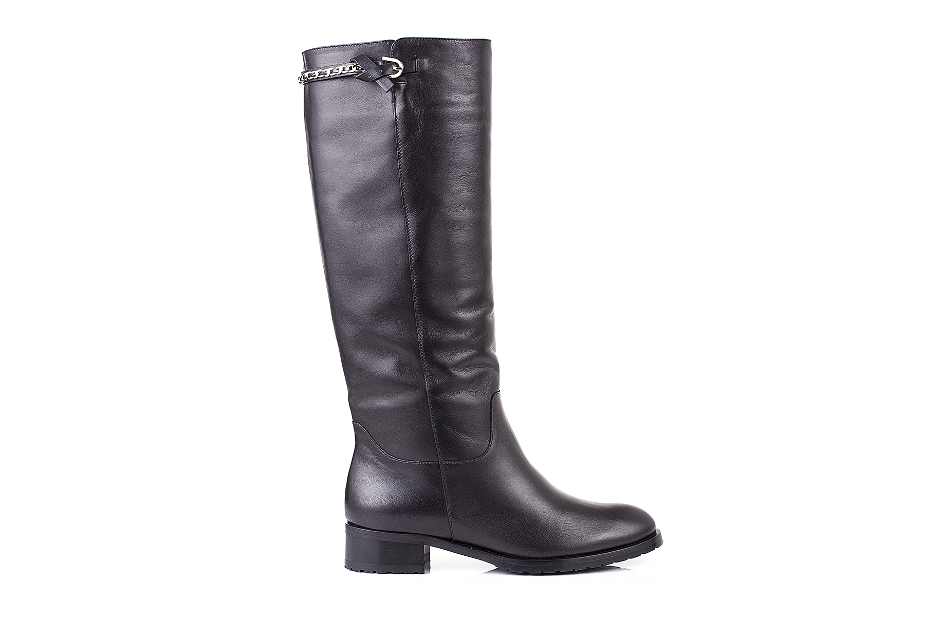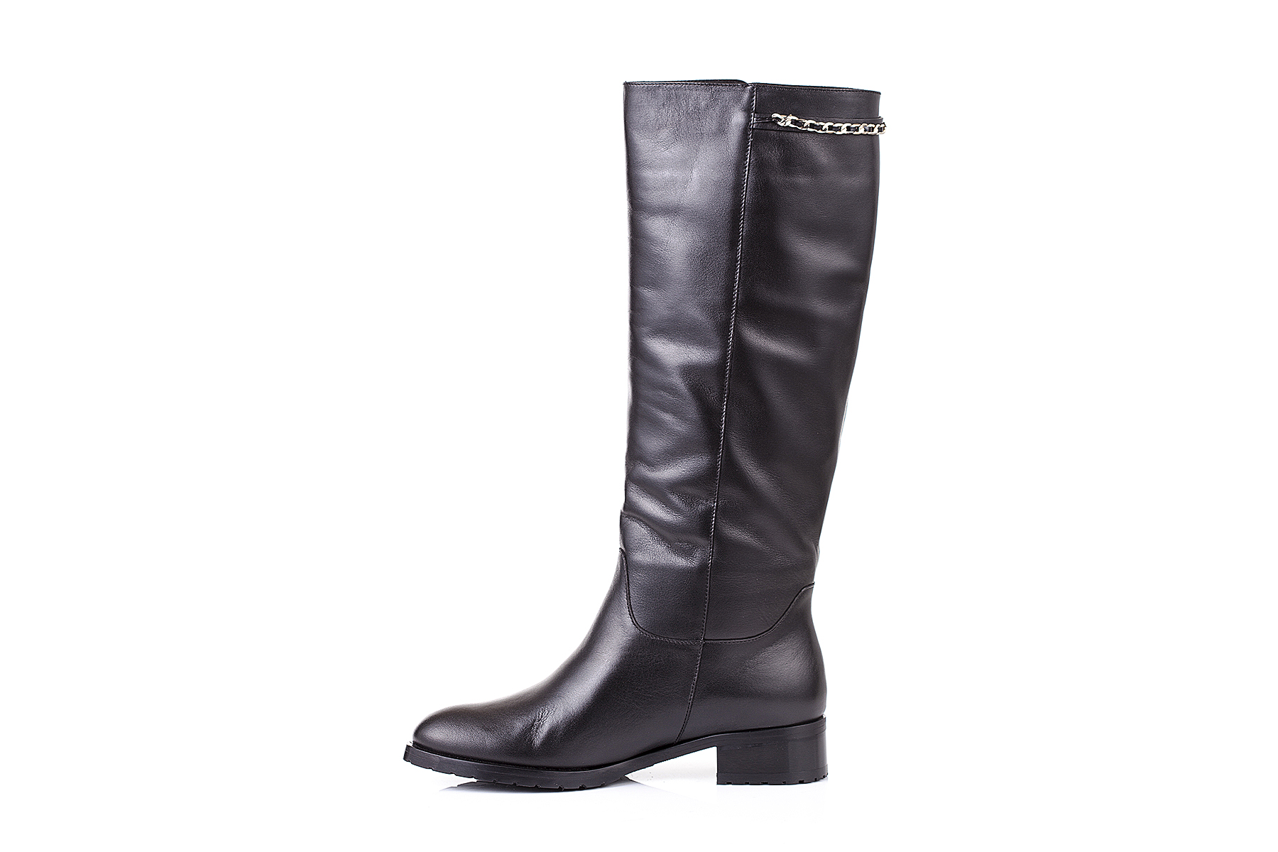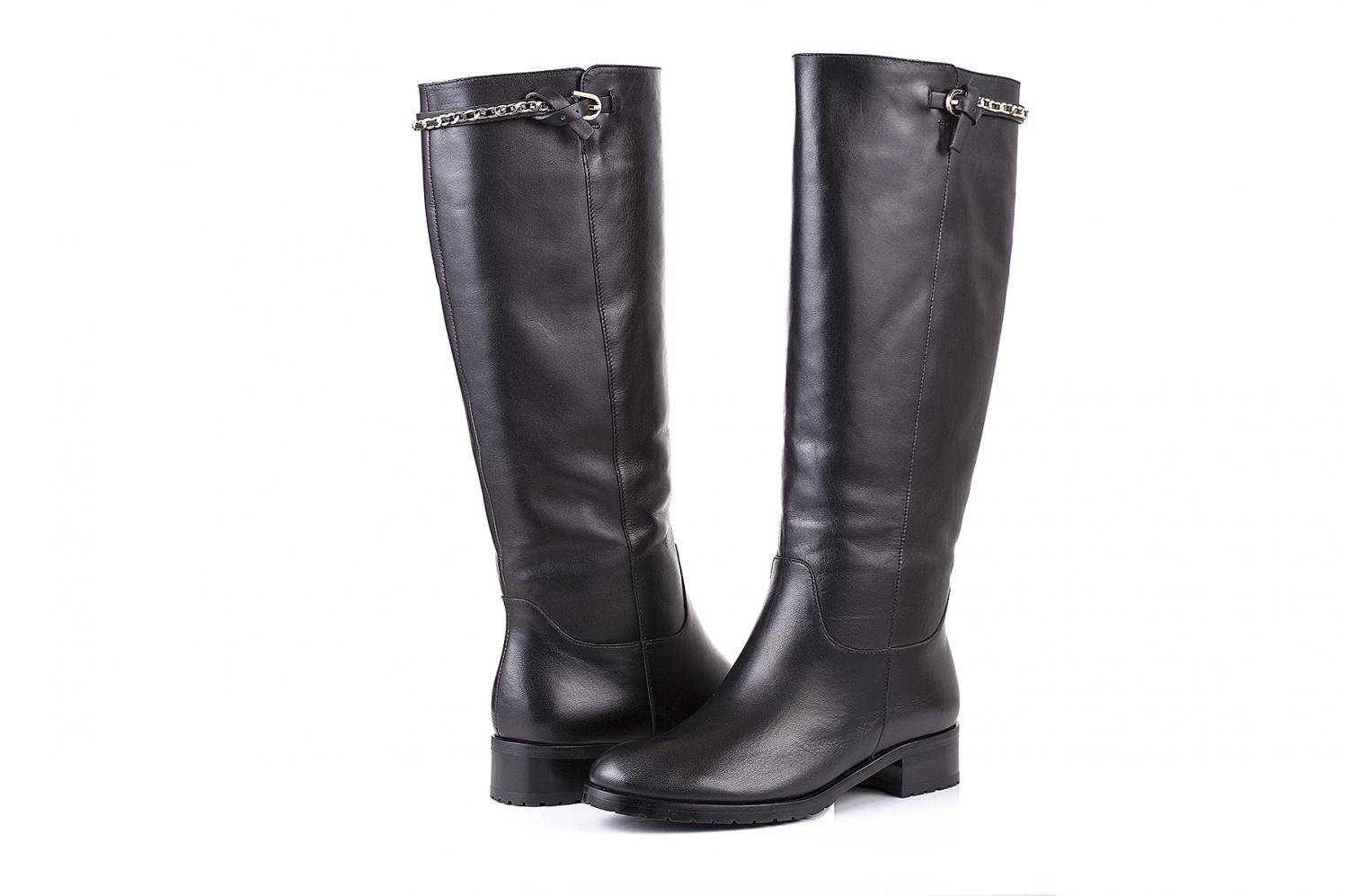 Женские сапоги из натуральной кожи на невысоком каблучке подойдут для зимнего периода. Их можно сочетать с джинсами, платьями и юбками, а также интересно комбинировать с любой верхней одеждой.