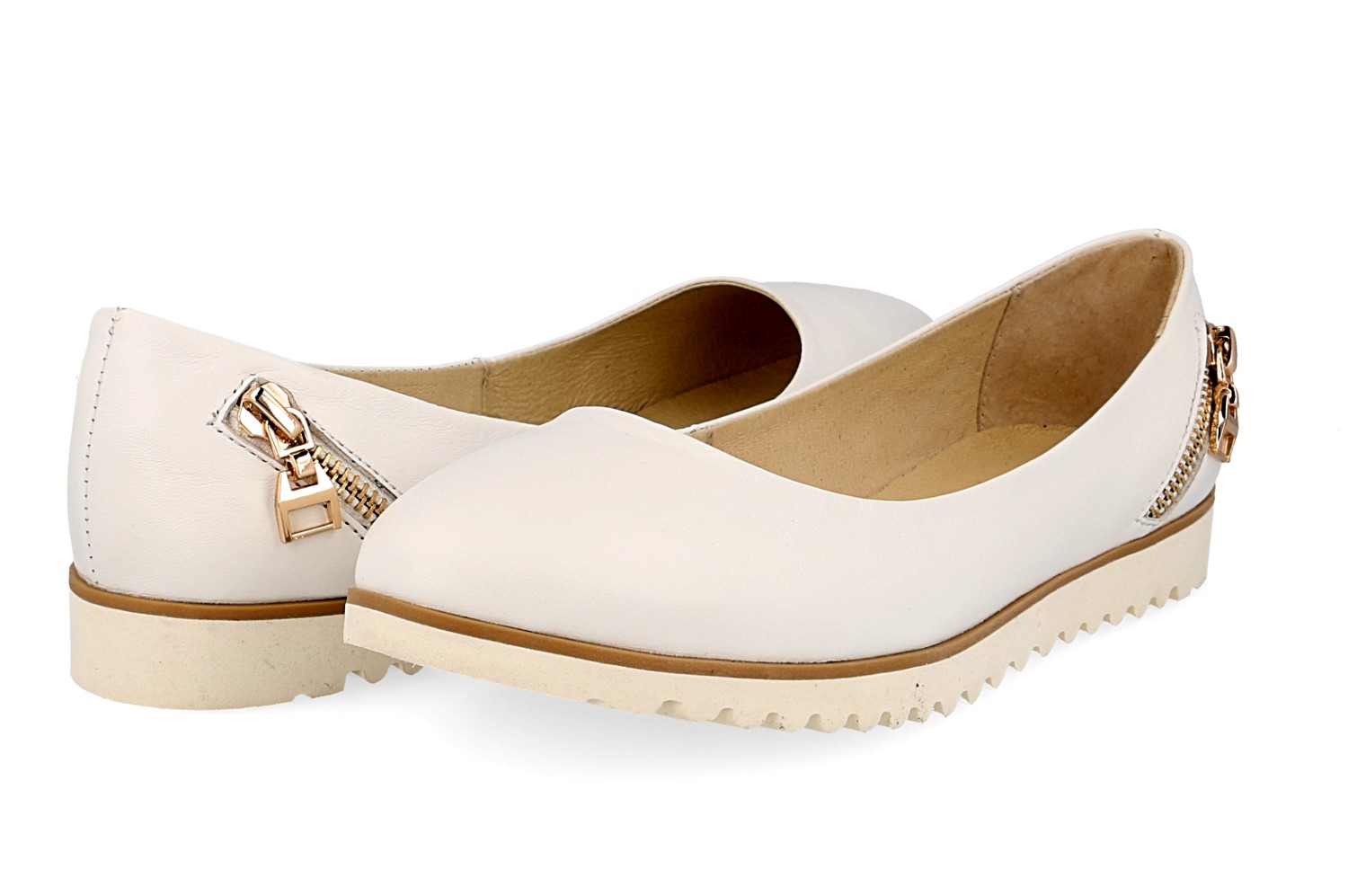 Летние балетки сделают Ваш образ ярким и привлекательным. Верх изделия выполнен из натуральной кожи белого цвета. Модель имеет декоративную змейку. Эти балетки подойдут под любой летний лук. В качестве подкладки использована кожа. Сплошная подошва удобна при повседневной носки и Вы сможете в них проходить хоть целый день, не ощущая при этом каких-либо неудобств.