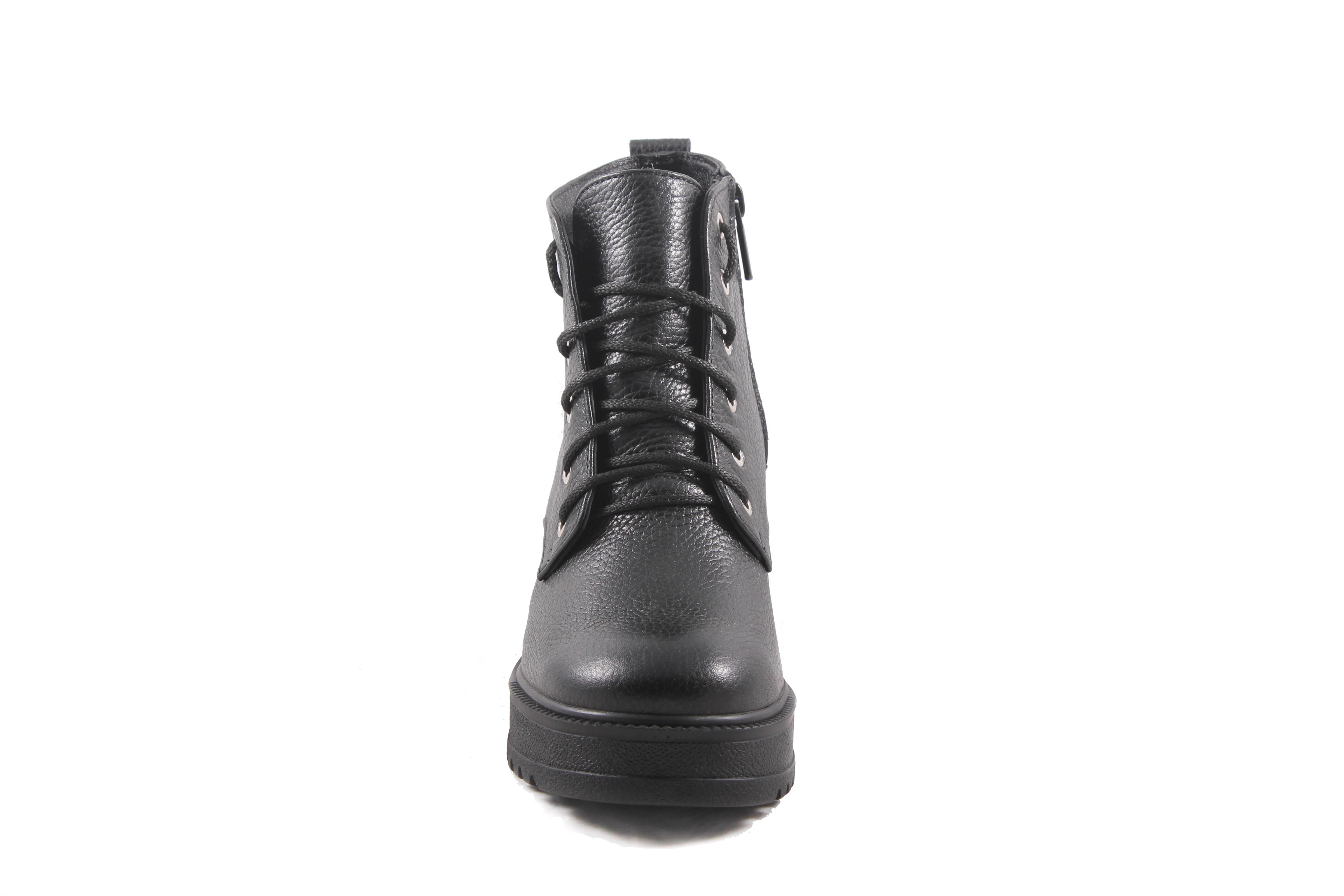 Стильные и очень удобные ботинки выполнены из натуральной кожи черного цвета. Эта модель позволит Вам прочувствовать комфорт и удобность их при носке. Они имеют шнуровку
