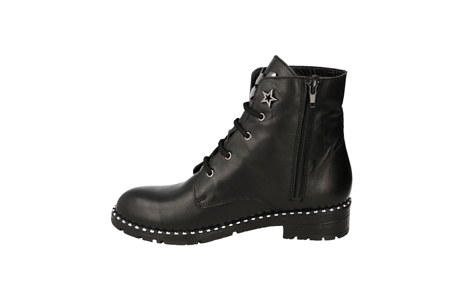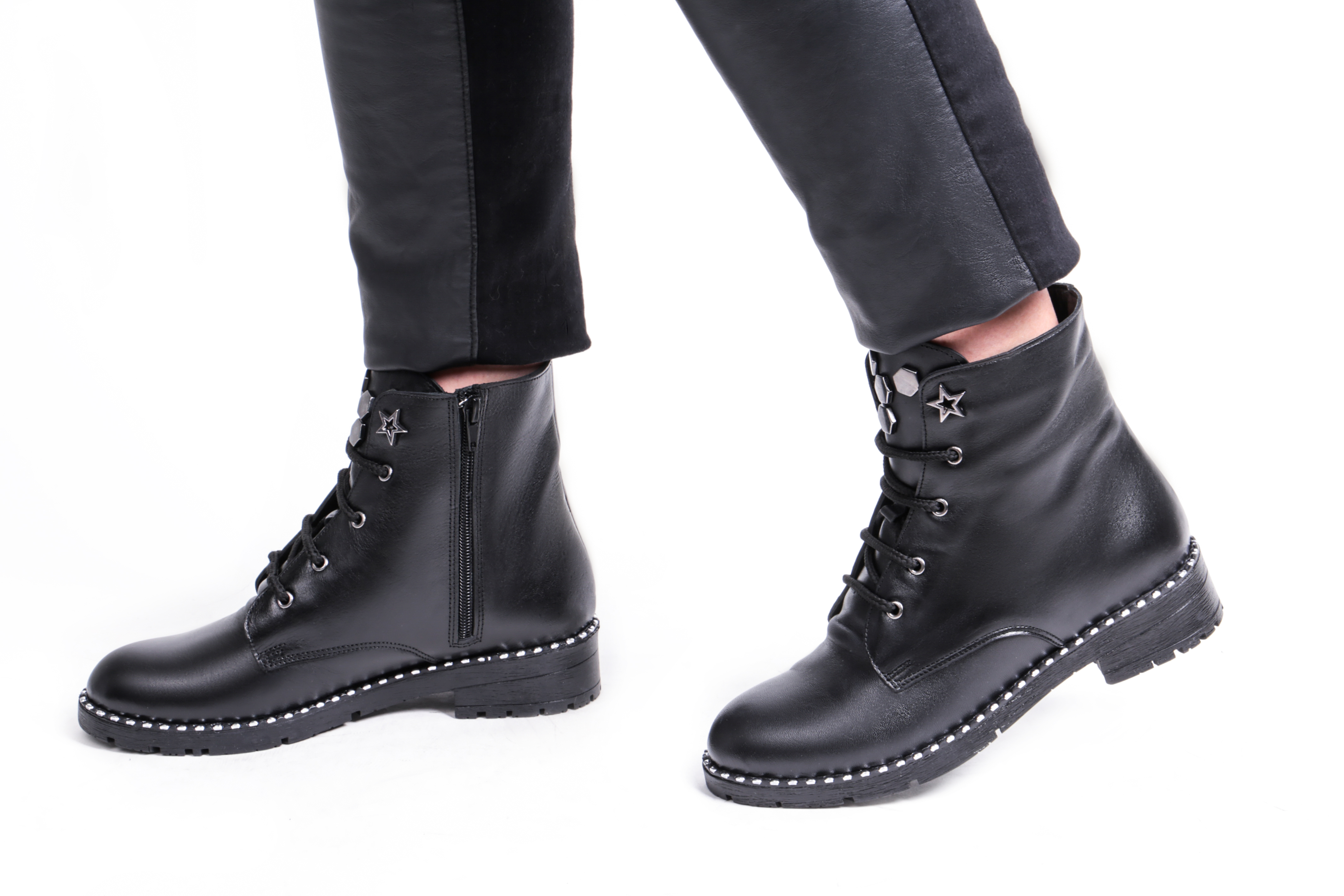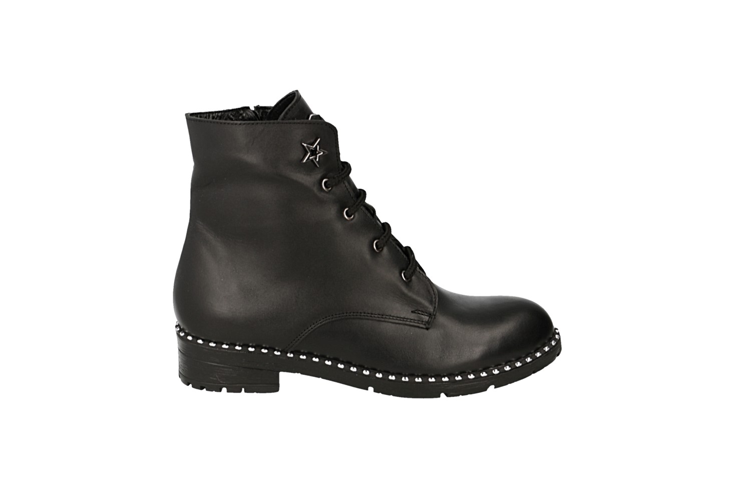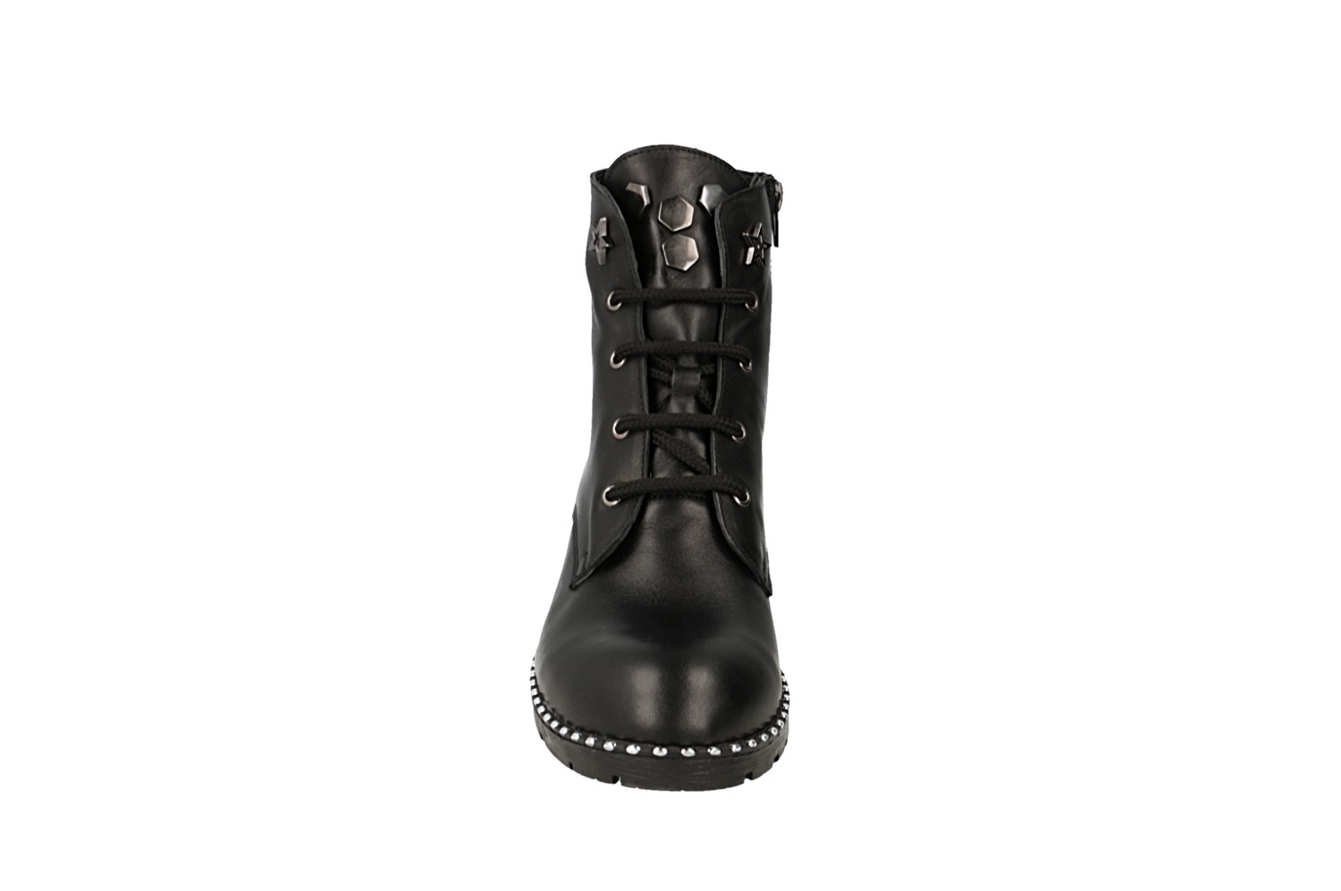 Ботинки Rifellini выполнены из натуральной кожи черного цвета. Материал подкладки и стельки - байка. Подошва ТЭП - прочная и гибкая. Высота каблука 4 сантиметра. Удобство и комфорт Вам обеспечен на протяжении всего дня!