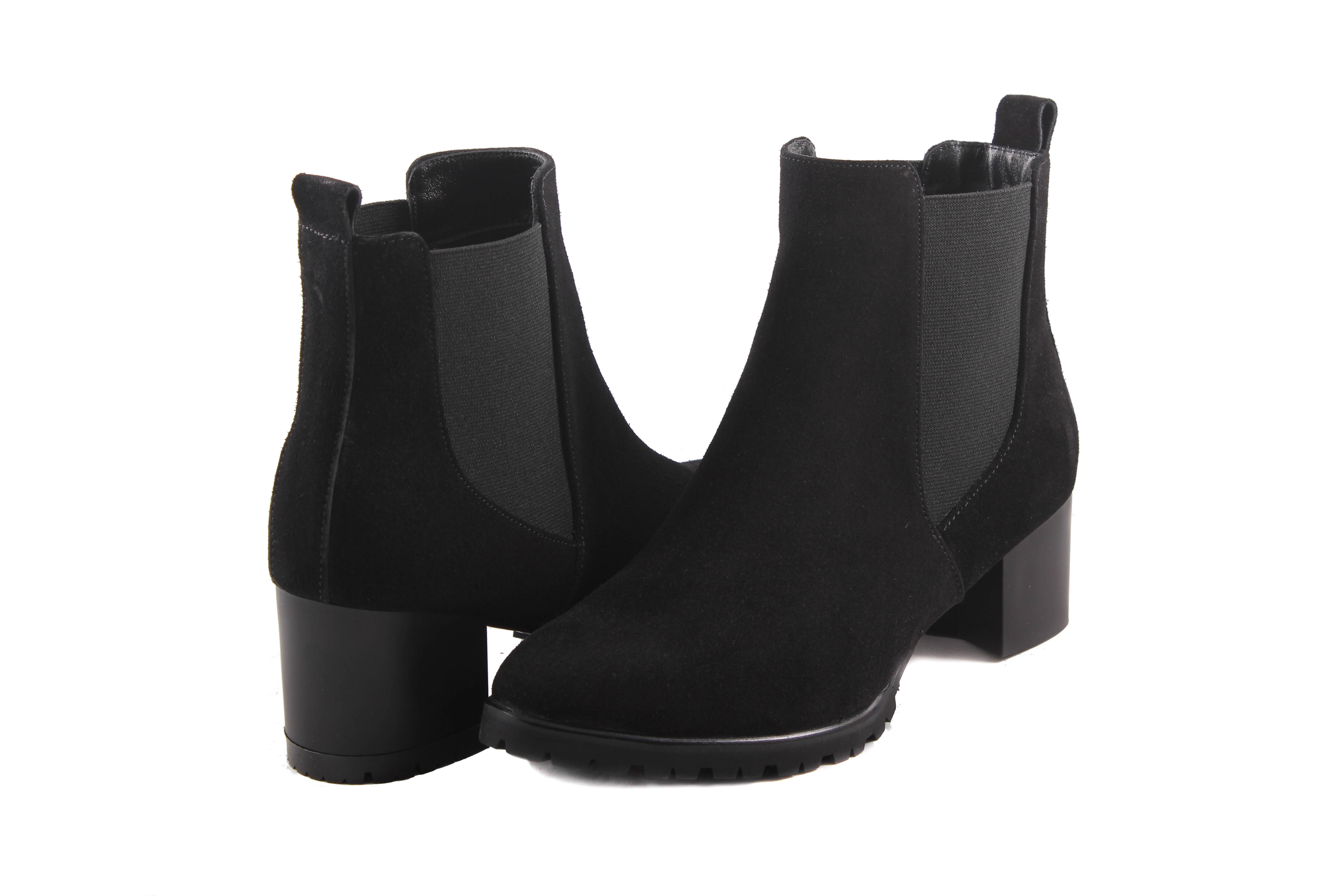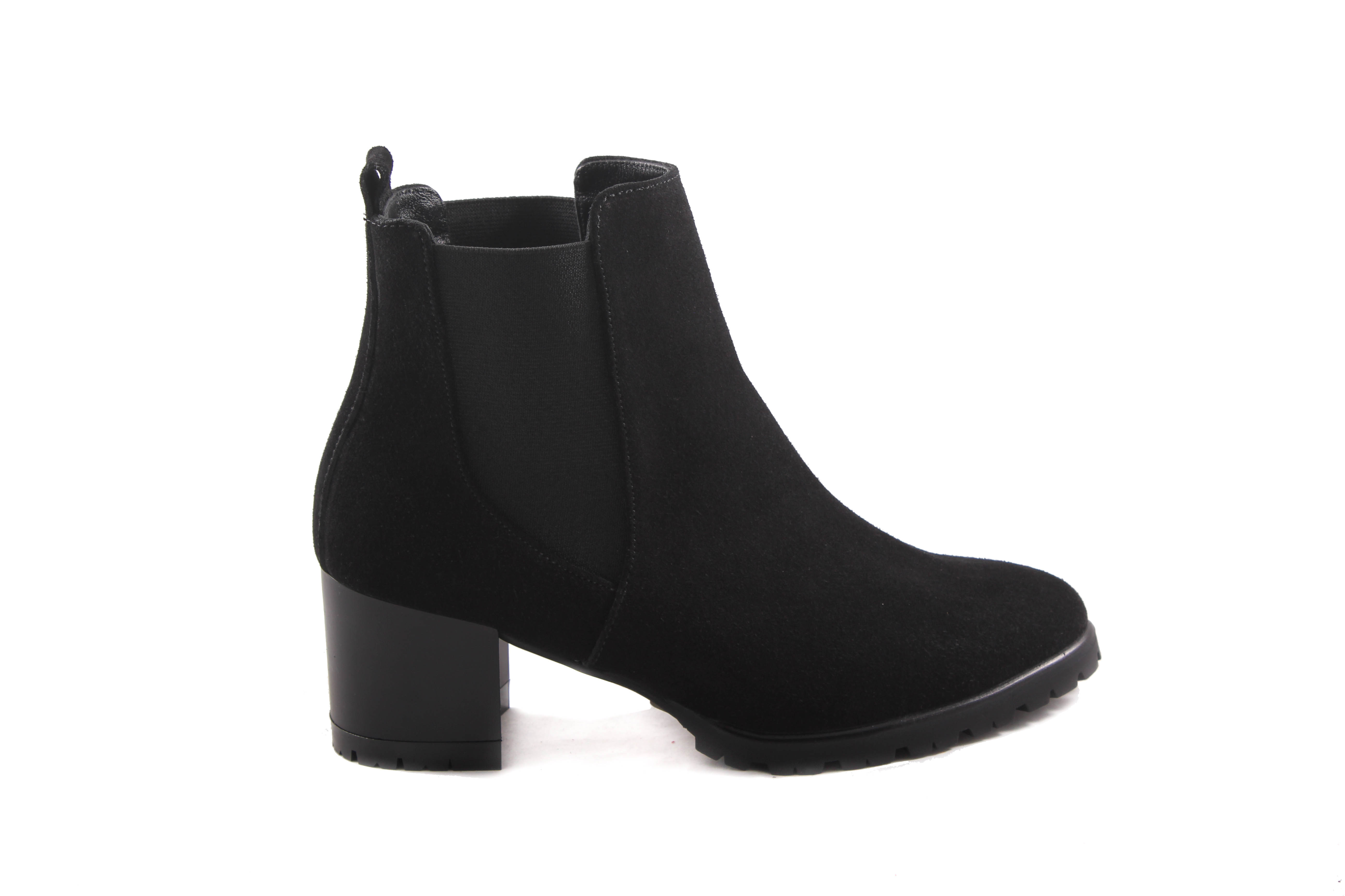 Удобные ботинки из натуральной замшевой кожи черного цвета. Минимум декора
