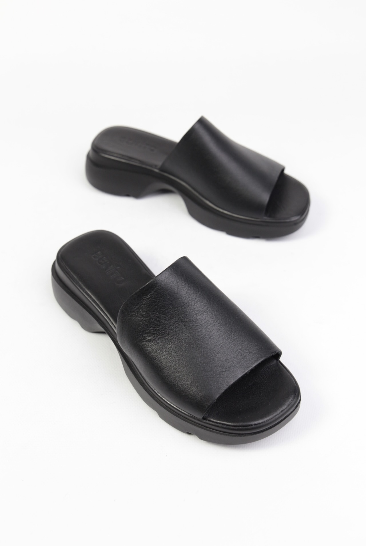 Шлепанцы Benito выполнены из натуральной кожи - отличная пара на каждый день. Материал подкладки и стельки - натуральная кожа. Подошва ПУ - прочная и гибкая! Удобство и комфорт Вам обеспечен на протяжении всего дня!